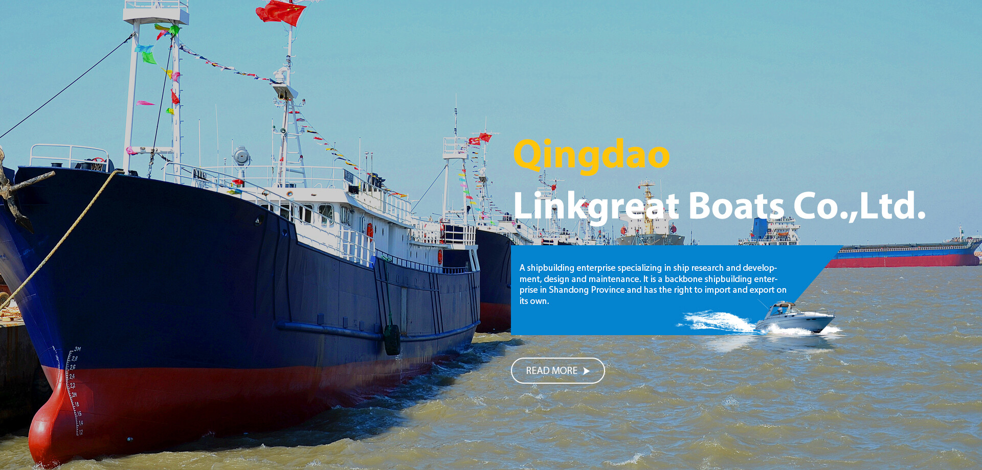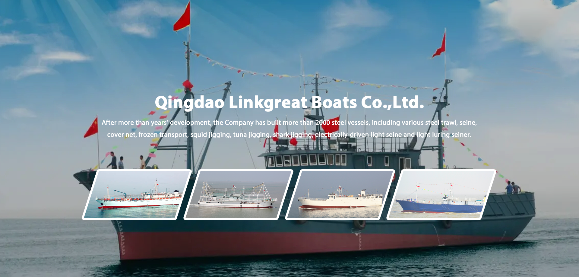 Qingdao Linkgreat Boats Co.,Ltd. located in beautiful seaside city - Qingdao, China, Is a shipbuilding enterprise specializing in ship research and development, design, and repair. It is a backbone shipbuilding enterprise in Shandong Province and has self operated import and export rights. After more than years’ development, the Company has built more than 2000 steel vessels, including various steel trawl, seine, cover net, frozen transport, squid jigging, tuna jigging, shark jigging, electrically-driven light seine and light luring seiner. The products have been mainly marketed to the coastal fishery enterprises in Jiangsu, Zhejiang, Hainan, Fujian, Guangdong, Liaoning, Jilin, Hebei and Shandong, and some products have been exported to Germany, Angola, Morocco, etc., the company has provided various fine quality ship types for ocean fishery production, with a high social reputation.